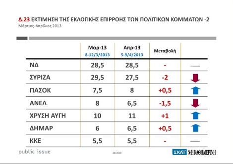 δείχνει δημοσκόπηση της εταιρείας Public Issue.