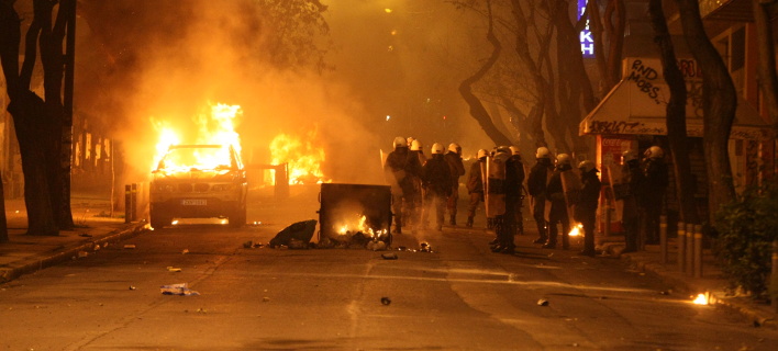 Εριξαν δεκάδες μολότοφ και πέτρες, έβαλαν φωτιές σε κάδους, ενώ, οι αστυνομικοί απάντησαν με ρίψη χειροβομβίδων κρότου-λάμψης.