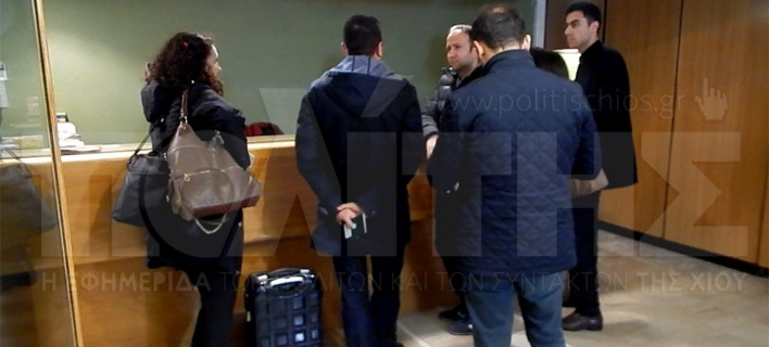 Στην αίθουσα επιβατών του Τελωνείου της Χίου τους υποδέχθηκε ο Διοικητής της Ασφάλειας Γ. Κεβόπουλος συνοδευόμενος από στελέχη της Αστυνομικής Διεύθυνσης Χίου.