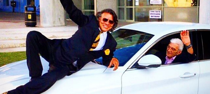 Σε αυτή, ο δήμαρχος Μαραθώνα είναι ανεβασμένος πάνω στο καπό του αυτοκινήτου που οδηγεί ο δήμαρχος Θεσσαλονίκης Γιάννης Μπουτάρης, ο οποίος...όπως γράφει ο Ηλίας Ψινάκης, τον πηγαίνει βόλτα!