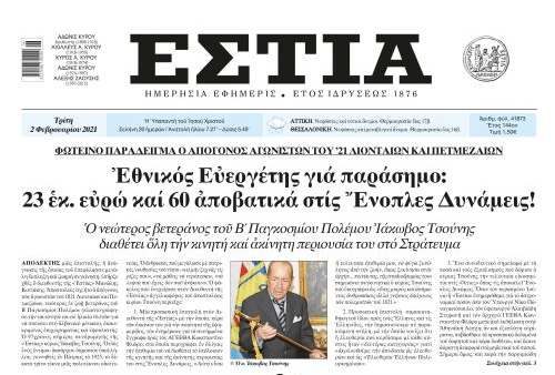 To κεφάλαιο έχει πατρίδα όταν ο κεφαλαιοκράτης είναι πατριώτης: ο 97χρονος επιχειρηματίας και εφοπλιστής Ιάκωβος Τσούνης ενημέρωσε τον Α/ΓΕΕΘΑ Κ. Φλώρο για την επιθυμία του να διαθέσει το υπόλοιπο της κινητής και ακίνητης περιουσίας... του στις Ένοπλες Δυνάμεις!