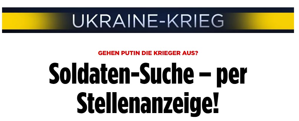 «Άραγε, ο ρωσικός στρατός βρίσκεται σε κατάσταση έκτακτης ανάγκης;», διερωτάται η «Bild» και προσθέτει: «Ξεμένει ο Πούτιν από στρατιώτες;».