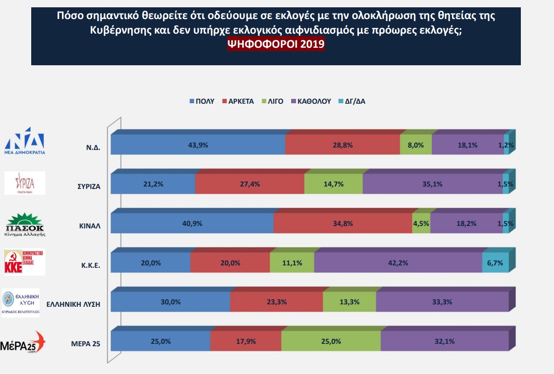 1. Το 59% θεωρεί σημαντικό ότι οδεύουμε σε εκλογές με ολοκλήρωση της θητείας της Κυβέρνησης χωρίς να έχουν υπάρξει πρόωρες εκλογές με το 38% να έχει αντίθετη άποψη